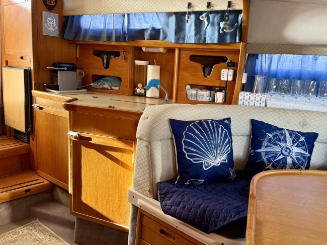 Preis + Provision ! Schnelles, sportliches Wohnboot, seetüchtig und treibstoffsparend, durch die starke Motorisierung eine Rarität (2x200 PS Volvo Penta AD41)